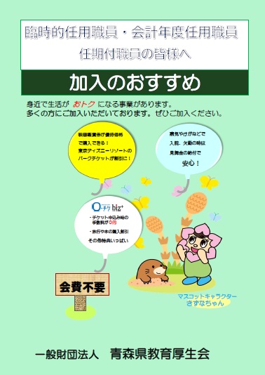 青森県教育厚生会は教職員の福利厚生事業実施団体として1932年(昭和7年)10月14日「青森県教職員互助会」の名称で設立され、1947年(昭和22年)6月10日「財団法人青森県教育厚生会」と改組しました。