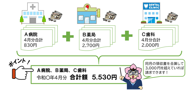 1ヵ月に受診した全ての病院や薬局などの領収書を