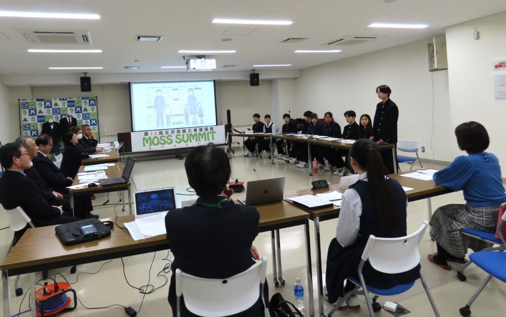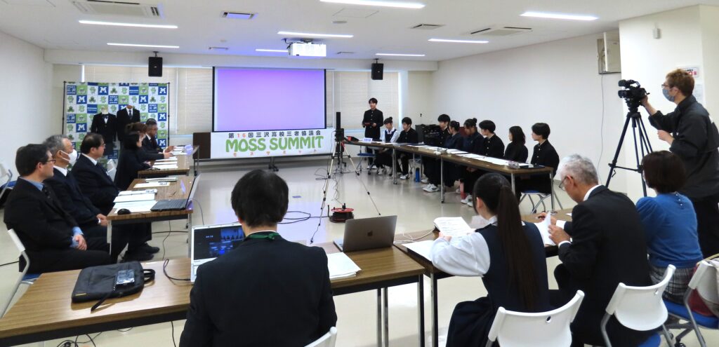 取材した「モスサミット(正式名称:三沢高校三者協議会)」は生徒・保護者・教員が、より良い学校生活や運営について対等な立場で話し合う協議会。
